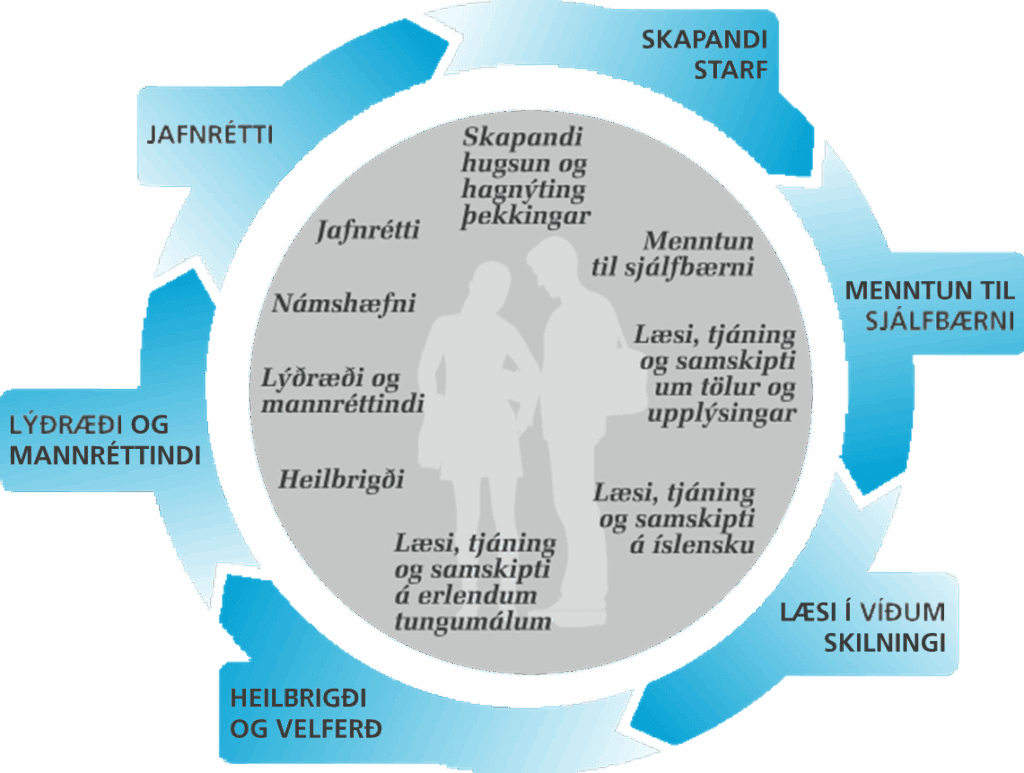 Grunnþættirnir skulu endurspeglast í öllu skólastarfi en lykilhæfnin tengir grunnþættina við kröfu um hæfni nemenda.